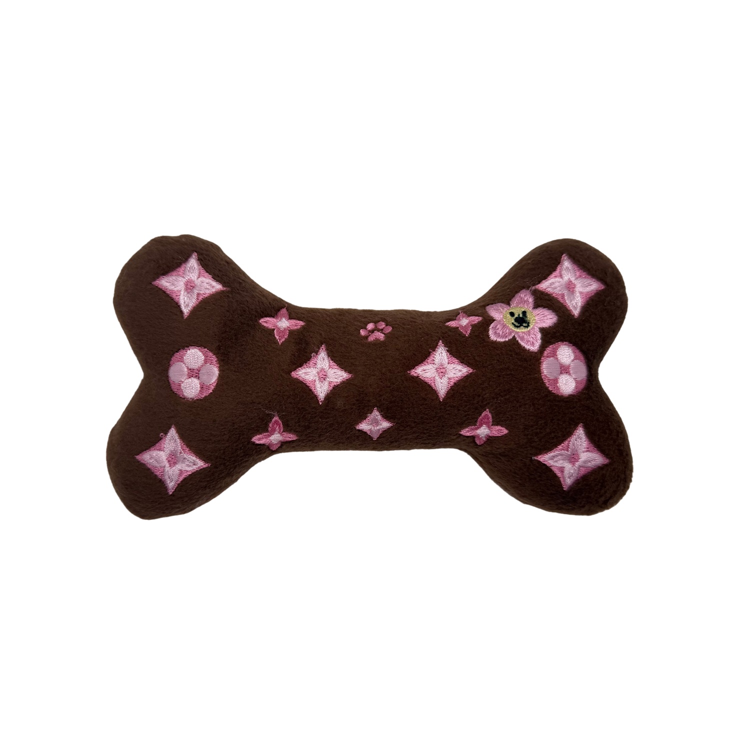 Introducing the Chewy Brown Vuiton Blossom Bone! Your furry friend will love sinking their teeth into this plush dog toy. Let them play and chew in style with this quirky and hilarious toy. Woof it up!