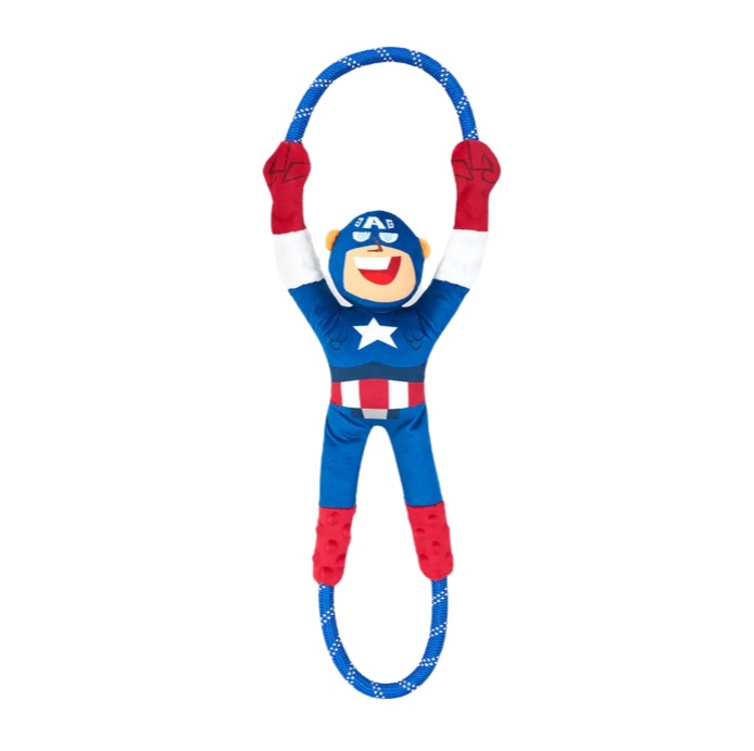 Playtime just got more Marvel-ous with the officially licensed Captain America RopeTugz dog toy! Featuring the same durable rope used in ZippyPaws’ Climbers leashes looped through Cap’s entire body, this extra-tough rope toy can withstand hours of heroic tug of war play with your pup.