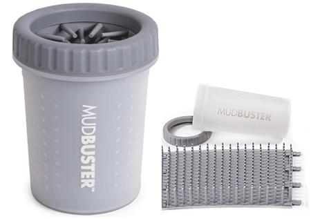 The Dexas Mudbuster provides quick cleaning of a dog's dirty or muddy paws, before they track it all over the house! It features an array of soft, gentle, thick silicone bristles inside an easy-to-grip tumbler. Add a little water, insert the muddy paw, do the twist, dab the paw dry, repeat for 3 more feet!