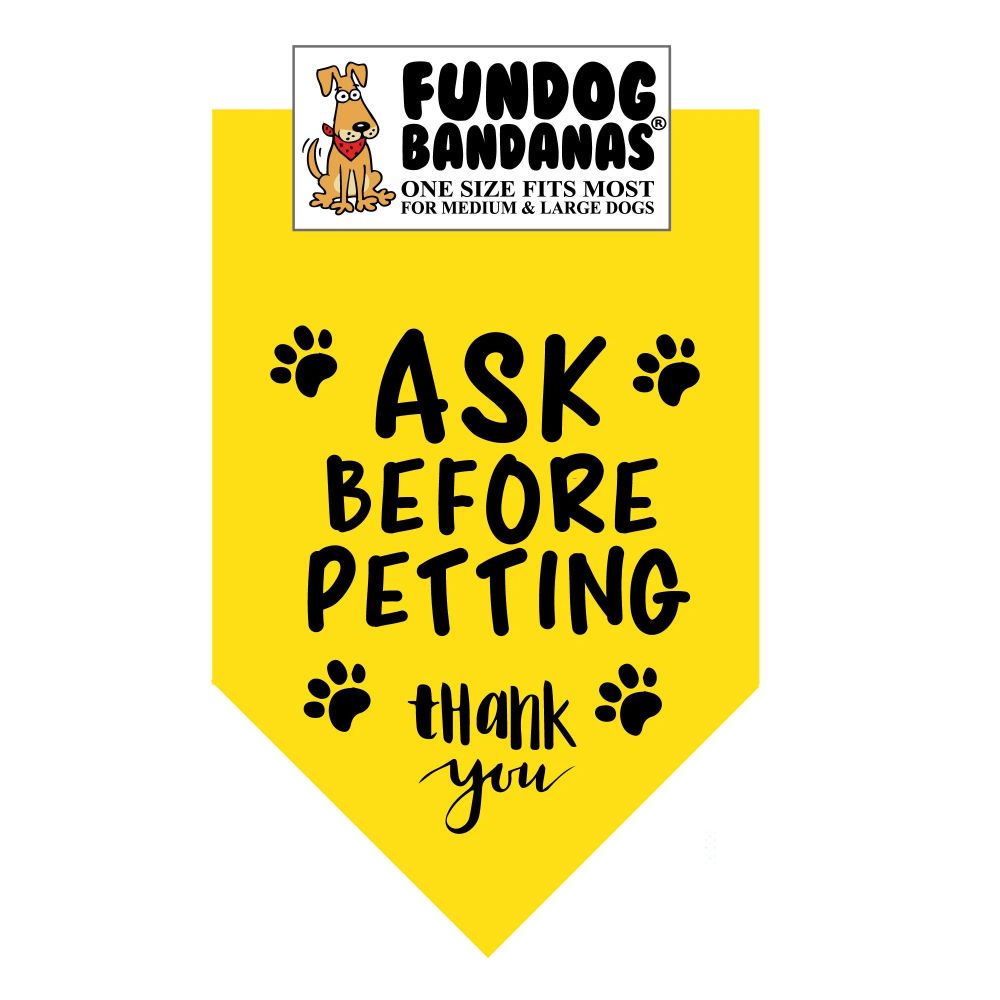 Is your dog so flippin' cute that people run up to it and grab at it? This brightly colored bandana will tell people to ask before petting so they remember...