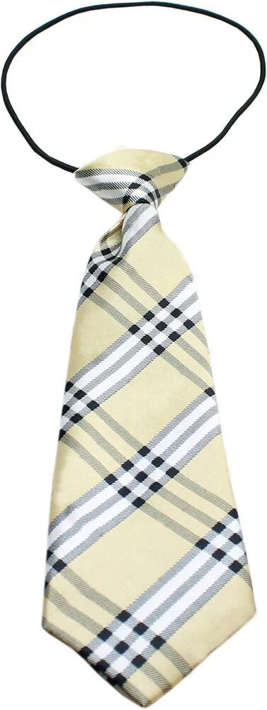 Decorative and sophisticated! These neck ties are for big dogs or pets, and come with a durable elastic band that will stretch to fit necks from 11"- 22". The necktie itself is made from elegant silky polyester and measures 2 ½" wide and 11" tall. Can be worn with or without a collar.
