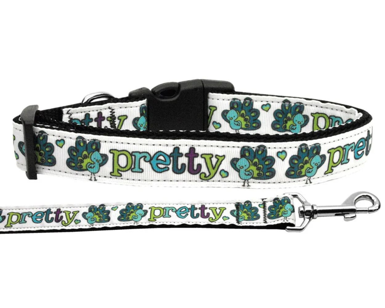 Pet Dog & Cat Nylon Collar or Leash, "Pretty As A Peacock"