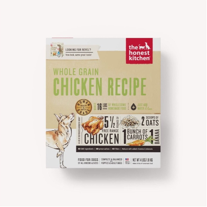 A recipe for dogs of all life stages made with free range chicken, organic barley, potatoes, organic oats, green peas, bananas and more. 2-lb box: makes 8 pounds of real food 4-lb box: makes 16 pounds of real food