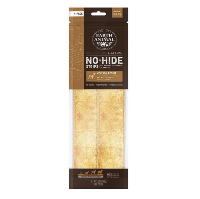 Earth Animal Dog No Hide Strips Venison 4 Pack