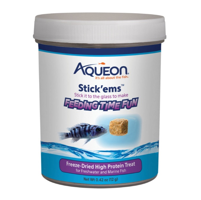 Aqueon Stick’ems freeze-dried treats create excitement during feeding time by providing even the pickiest of eaters with a nutritious blend of brine & mysis shrimp. By adhering to the side of the tank, Stick’ems gives you a more up-close and personal experience with your fish as they eat, allowing you to be a part of the experience. This is an excellent treat for both freshwater and marine fish. Stick’ems treats make treat time fun!