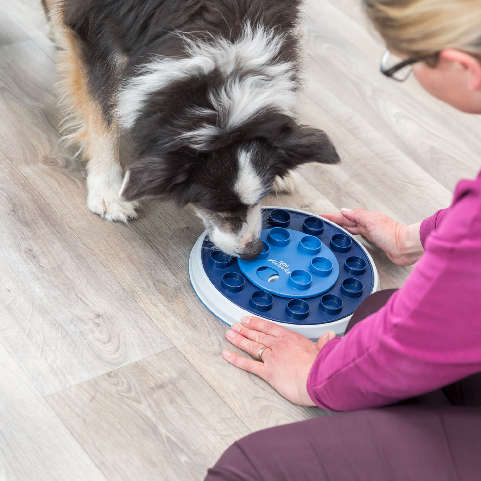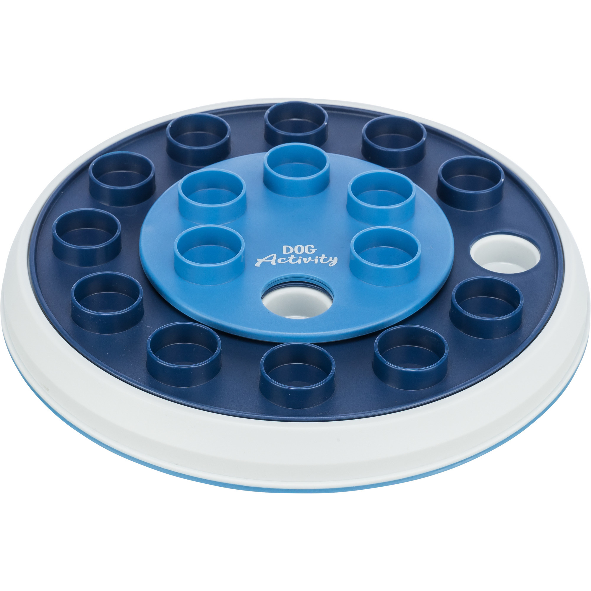 TRIXIE Dog Activity Twister Strategy Game is ideal for intermediate players and a fun way to engage your dog’s mind and sharpen their problem-solving skills. This level 2 puzzle is designed with two rotating plates for hiding snacks or kibble; a total of 18 hidden compartments. Your pet is required to use his sense of smell to uncover their tasty rewards. The two plates must be moved against each other to reveal the treats in the hidden compartments. We’ve also included an instructional booklet with tips and tricks for challenging and training dogs of all ages through play. Suitable for dogs of all ages and activity levels. Made from food-safe materials that are BPA, PVC, and phthalate-free. Easy to clean with warm water and soap or dishwasher safe.