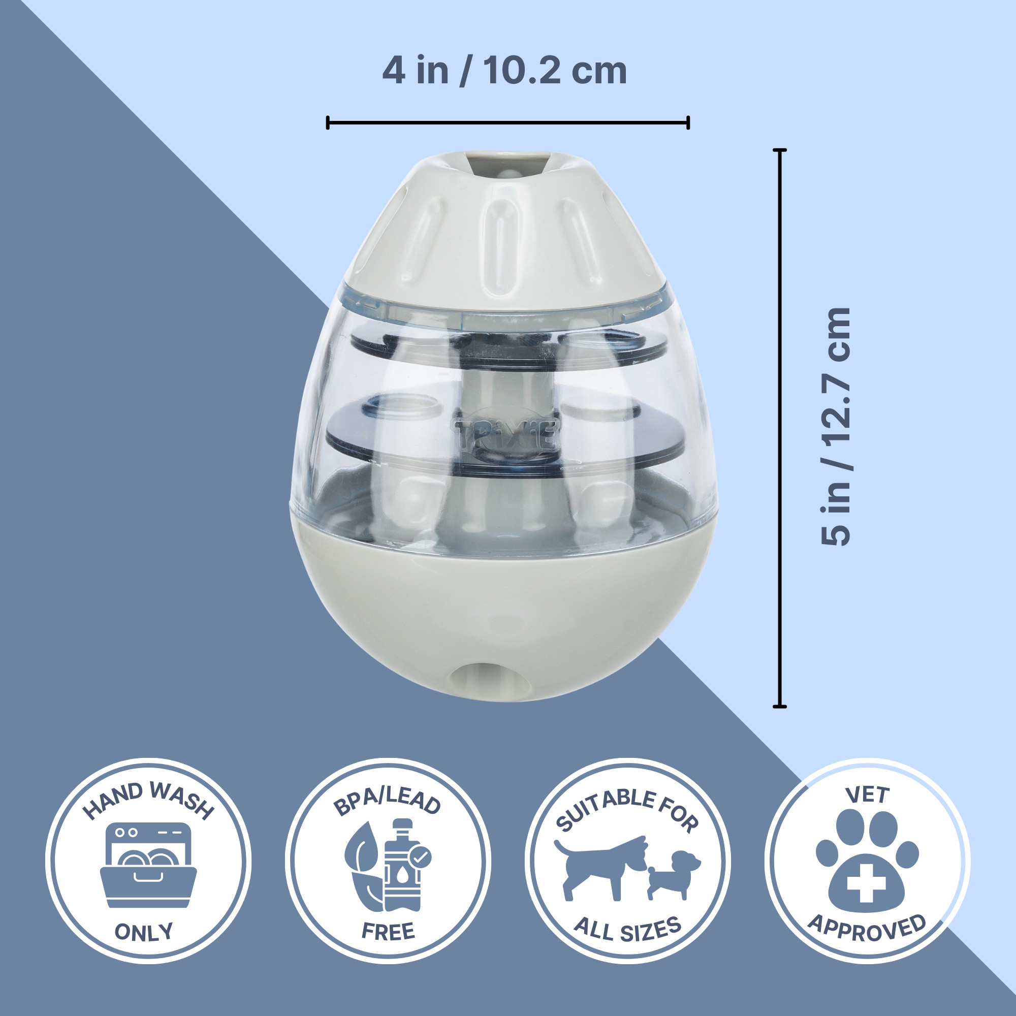 Turn mealtime into playtime with The TRIXIE Roly Poly Treat Dispenser! This toy is designed to keep dogs of all ages entertained, engaged, active, and mentally stimulated. You can adjust the level of difficulty depending on your furry friend. Perfect for both cats and dogs. The unique egg design randomly dispenses treats or dry kibble, which is adjustable to your pet’s level of play. The four removable inner plates have openings to customize to your pet’s needs, and you can increase the challenge over time. Nothing is better than enjoying a delicious treat when you earned it. Load the toy with dry goodies, and as your pet swats and bats to make the Roly Poly weeble and wobble, a tasty treat is released!