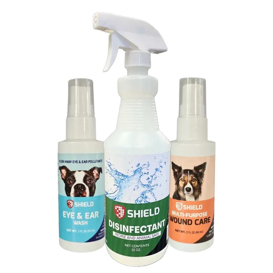- Bundle includes: Wound care 2oz, Eye & Ear Care 2oz and Disinfectant 32oz Sprays
