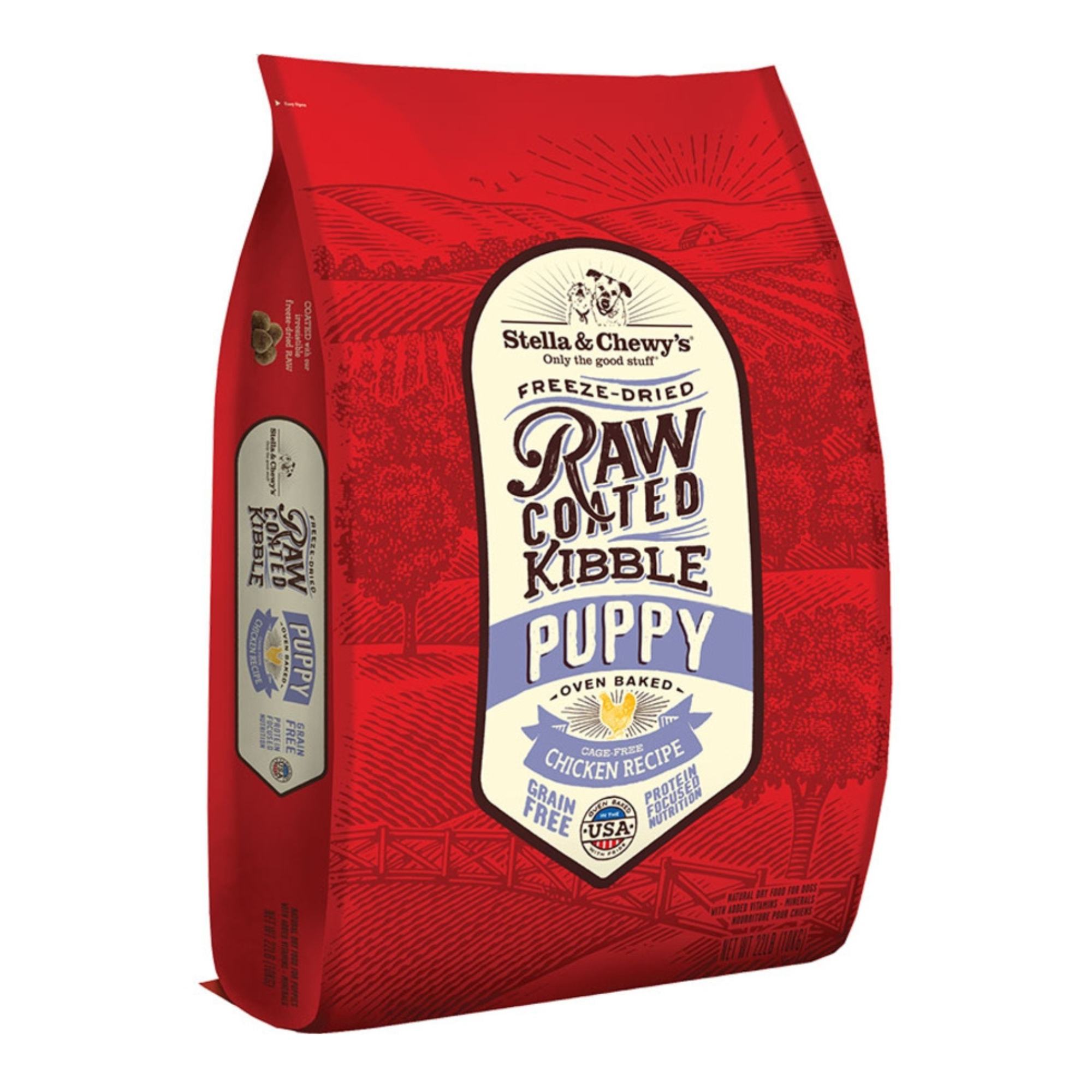 Give your puppy a healthy start in life with Stella & Chewy’s Raw Coated Cage-Free Chicken Recipe Puppy Grain-Free Dry Dog Food. This high-protein kibble is specially designed for growing puppies, with a gentle freeze-dried raw coating to support their healthy development. Made with organic fruits and vegetables, added taurine, and probiotics, this recipe promotes optimal digestion for your little one. Plus, the abundance of omega fatty acids will give your puppy healthy skin and a shiny coat. Proudly made in the USA, this food is the perfect choice for pet parents who want the best for their furbaby.