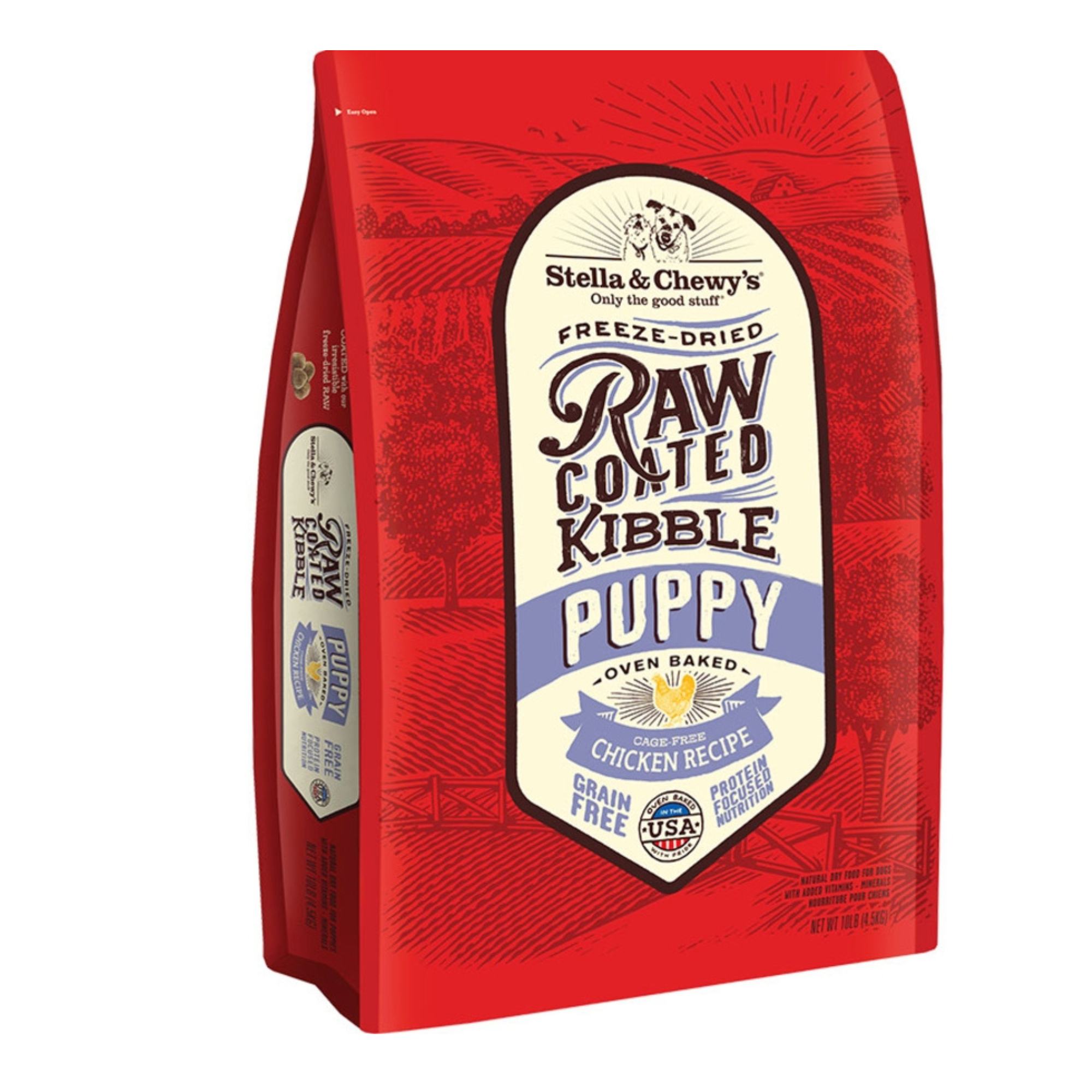 Give your puppy a healthy start in life with Stella & Chewy’s Raw Coated Cage-Free Chicken Recipe Puppy Grain-Free Dry Dog Food. This high-protein kibble is specially designed for growing puppies, with a gentle freeze-dried raw coating to support their healthy development. Made with organic fruits and vegetables, added taurine, and probiotics, this recipe promotes optimal digestion for your little one. Plus, the abundance of omega fatty acids will give your puppy healthy skin and a shiny coat. Proudly made in the USA, this food is the perfect choice for pet parents who want the best for their furbaby.