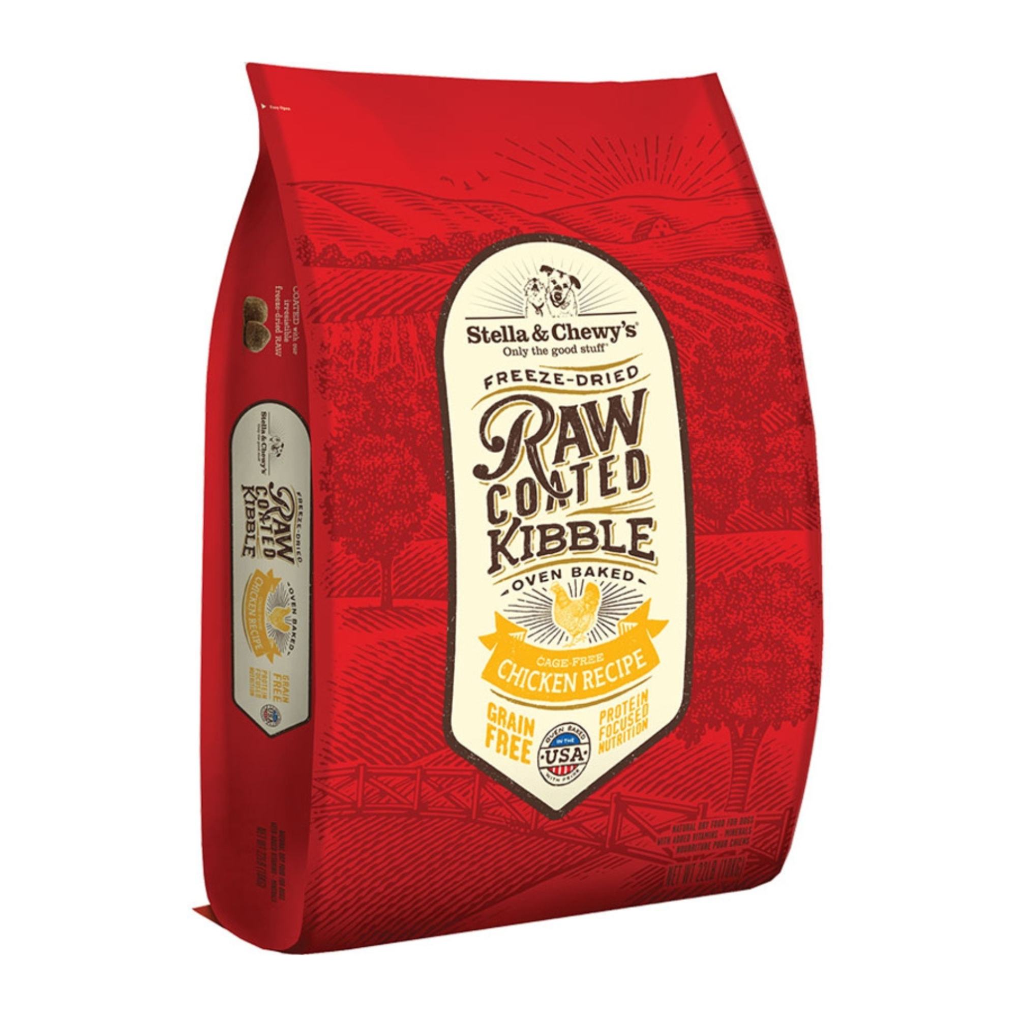 Fuel your dog’s day with Stella & Chewy’s Raw Coated Cage-Free Chicken Recipe Grain-Free Dry Dog Food. This protein-rich baked kibble features an irresistible freeze-dried raw coating for a boost of flavor and nutrition. Made with organic fruits and vegetables, added taurine, and probiotics, this recipe supports optimal digestion. It also promotes healthy skin and a shiny coat with omega fatty acids. Proudly made in the USA with the world’s finest ingredients, this food is a must-have for pet parents looking to provide their pup with the best.