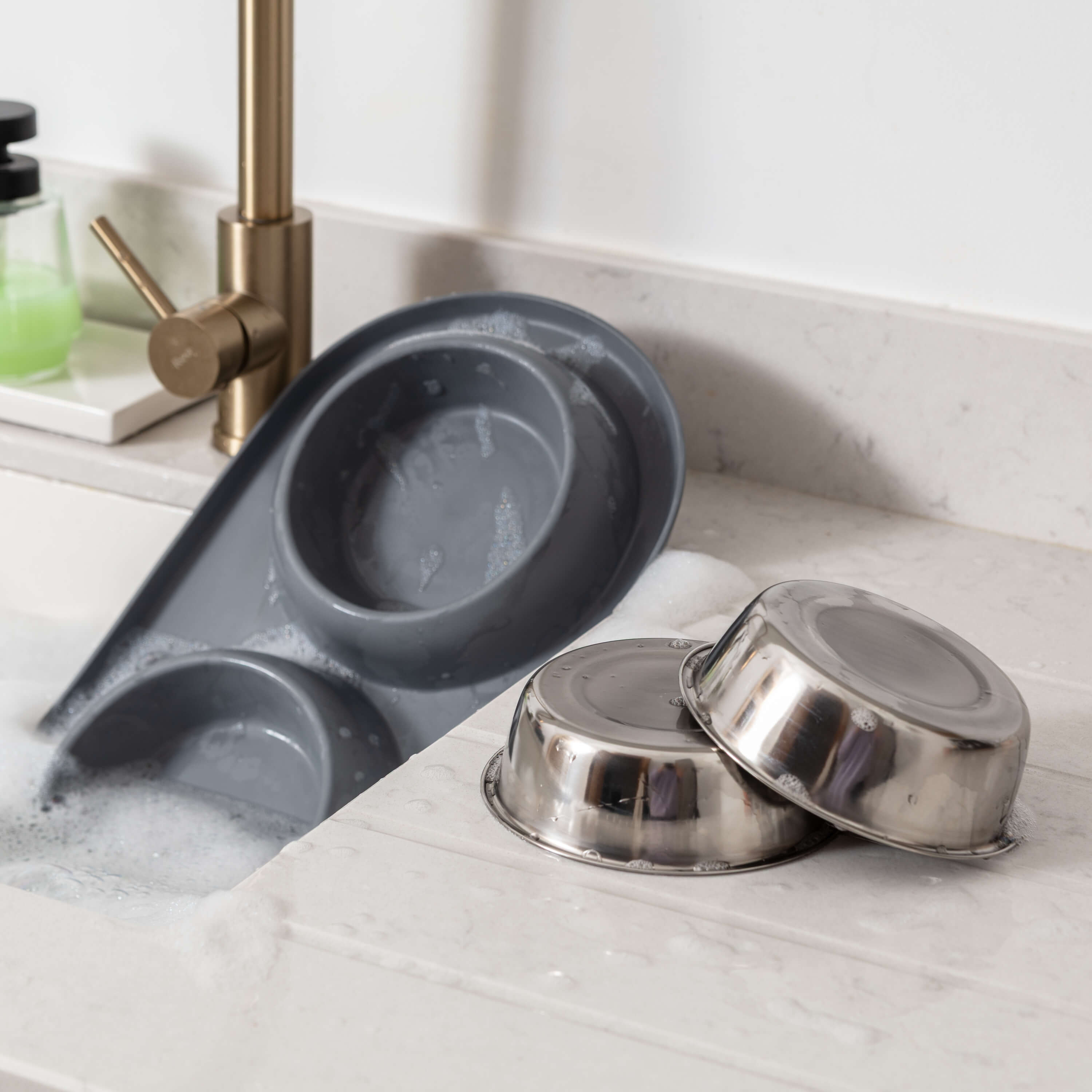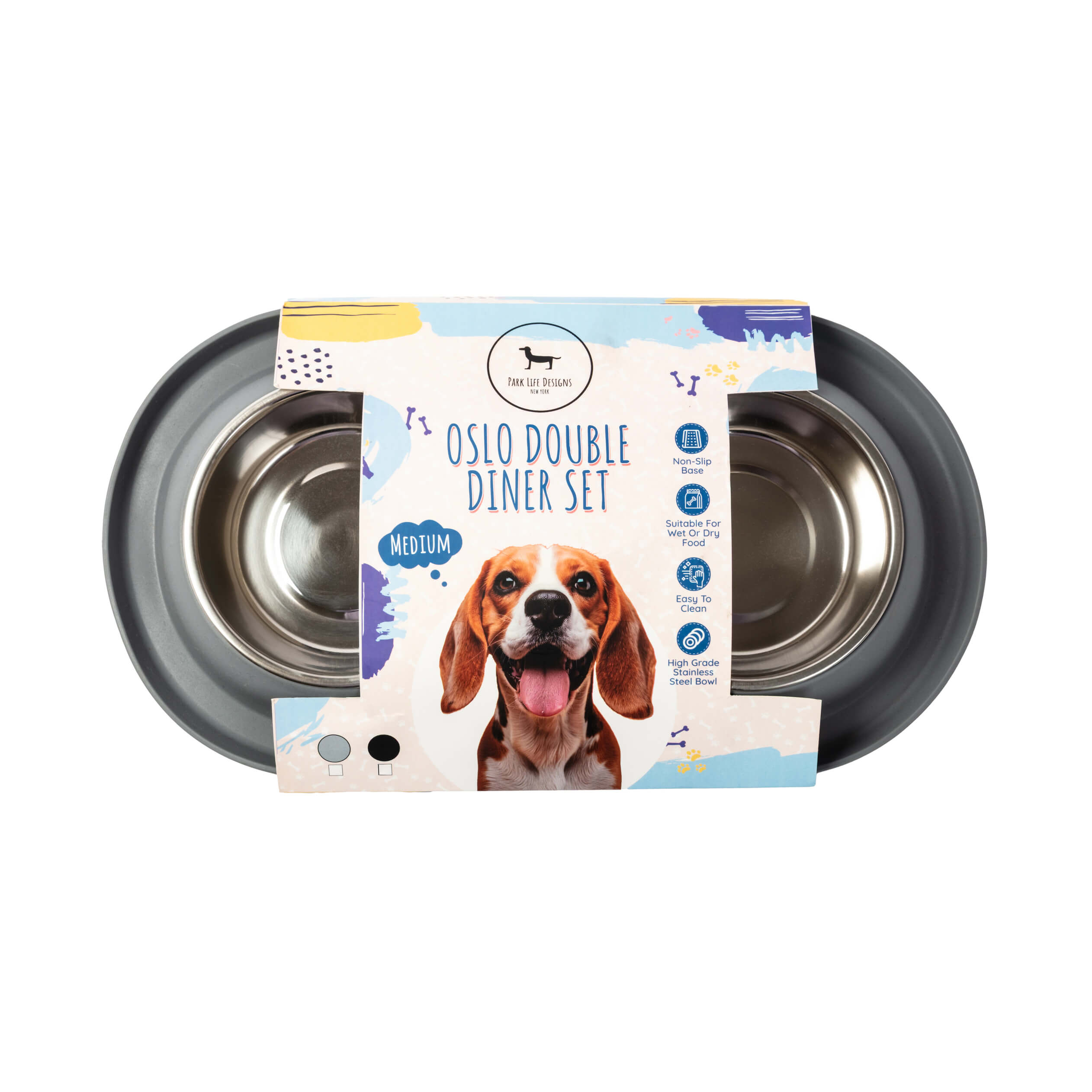 The Oslo Diner Set pairs two durable stainless-steel bowls with a sleek, easy-clean silicone mat designed to keep everything in place. Available in black or grey and in three convenient sizes, it’s a minimalist, practical solution that reduces mess and elevates any home décor.