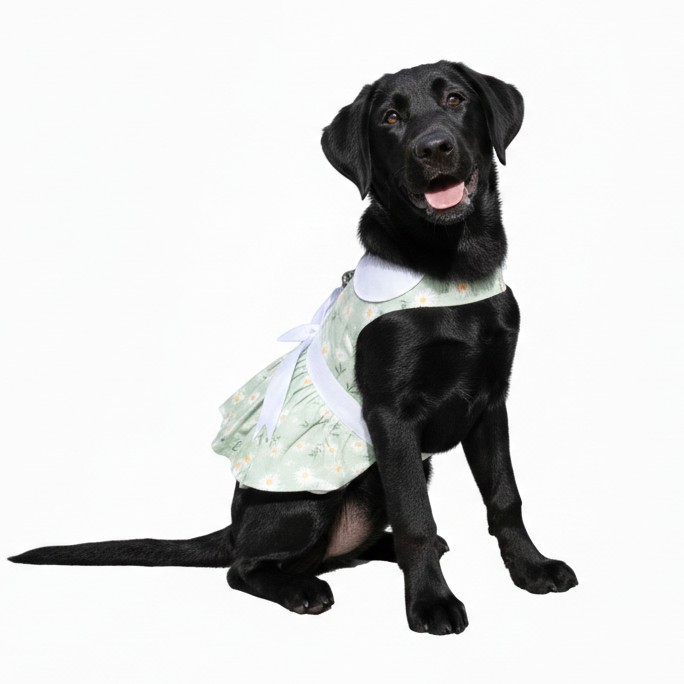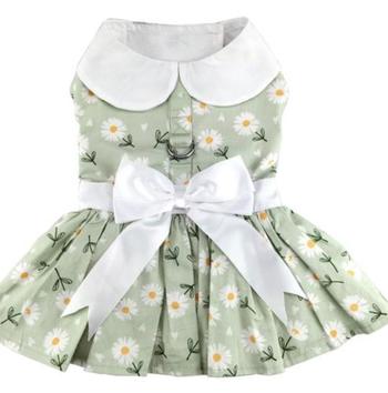 Fresh, fun, and perfect for warm weather, the Mint Green Daisy Dog Dress with Matching Leash brings cheerful spring style to any pup’s wardrobe. This adorable dog harness dress features a soft mint-green bodice paired with a playful daisy print skirt and a bright coordinating bow for a charming boutique look. Lightweight and comfortable, it’s ideal for spring strolls, summer outings, and sunny photo moments.