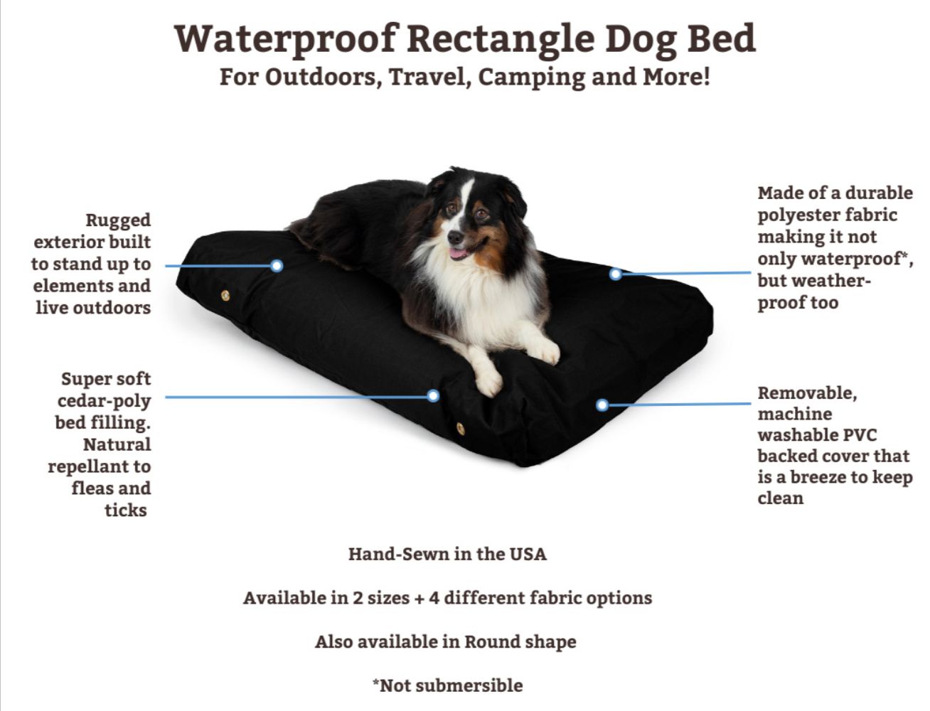 Waterproof Rectangle Bed Features: Exterior Fabric: Durable polyester/PVC-backed waterproof cover Cleaning & Care: Machine-washable cover*...