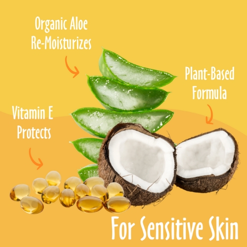 Ingredients: Purified water, renewable plant-derived & coconut-based cleansers, organic aloe vera, vitamins A, B, D, & E, panthenol, preservative.