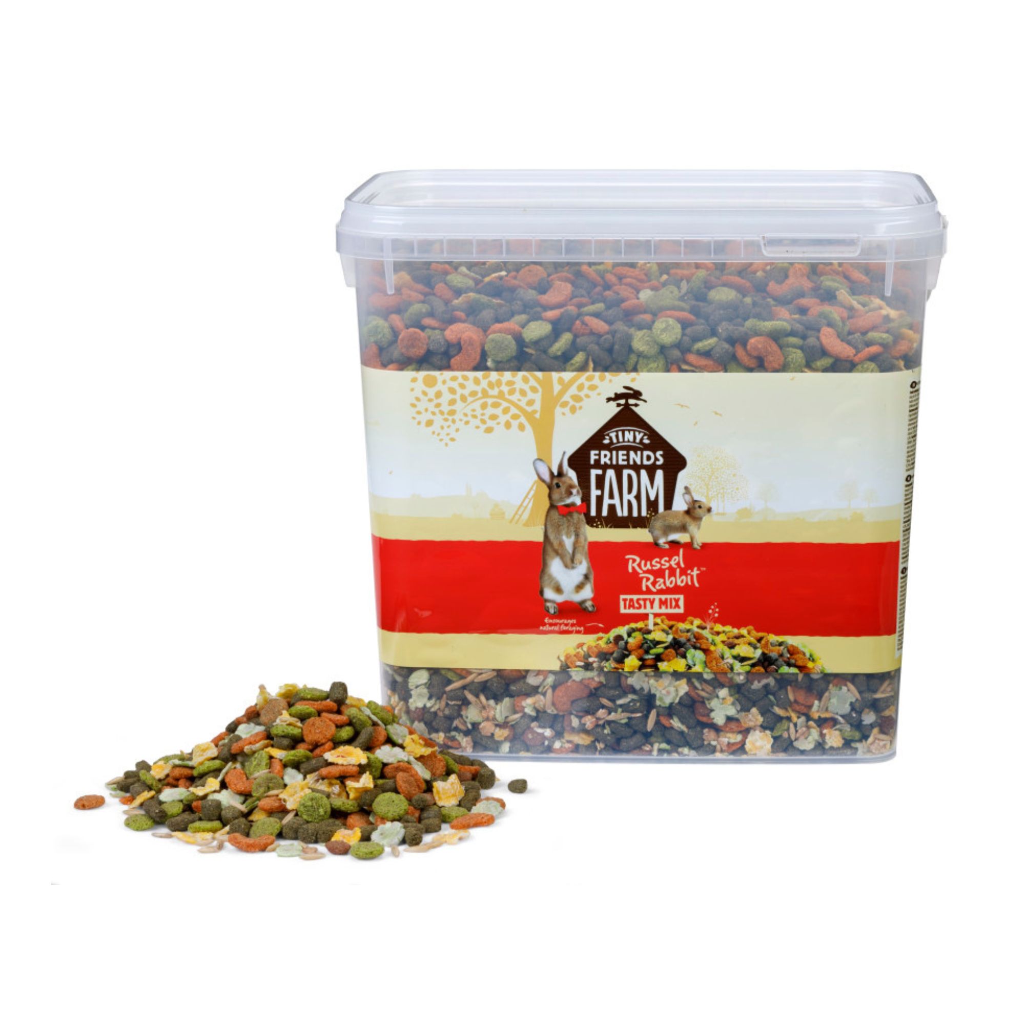 Russel Rabbit Tasty Mix is nutritionally balanced and suitable for adult rabbits of all shapes and sizes. Delicious ingredients such as Timothy Hay, maize, oats, wheat and peas, as well as added vitamins provide a tasty everyday diet that helps promote your pet’s natural wellbeing and vitality.