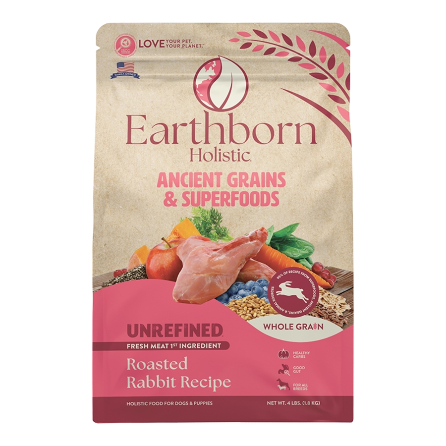 Your dog will go head over tail for Earthborn Holistic’s Unrefined Roasted Rabbit with Ancient Grains & Superfoods Dry Dog Food. This recipe...