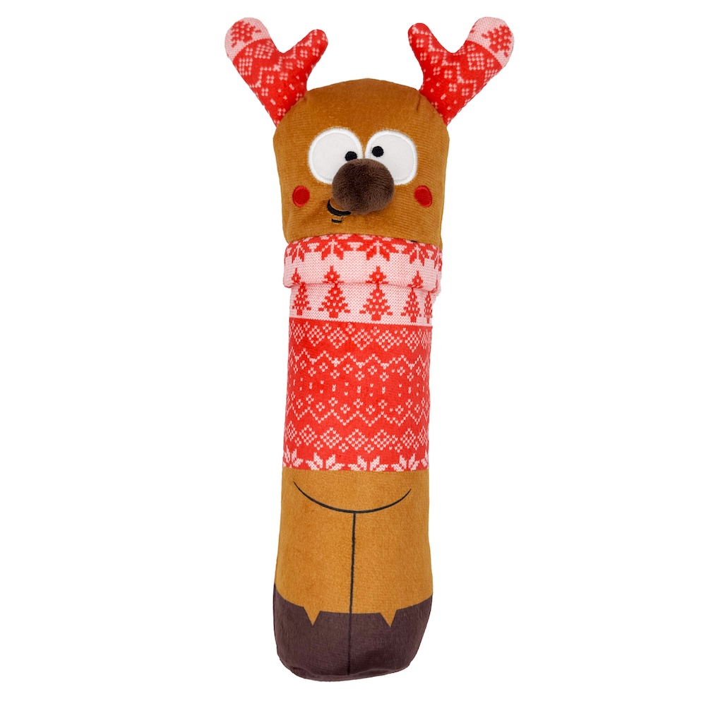 SHAKE TO SQUEAK! This Fetchies® toy has a shake noisemaker that squeaks when you shake!
