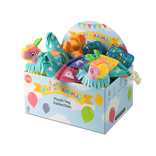 Three of each toy in our Party Animal collection with a themed display box!
