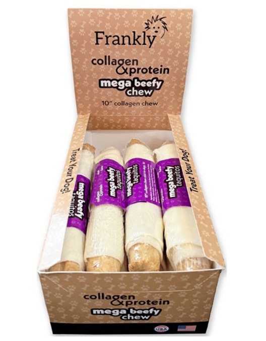 Our Mega Beefy Taquitos are absolutely delicious and packed with collagen, a highly-digestible ingredient known to promote healthy skin, coat, joints, nails and teeth. They’re made from 100% traceable USA cattle and are wheat, sugar, preservative and GMO free. Beefy Taquitos are a two-in-one fun and healthy treat for every dog!