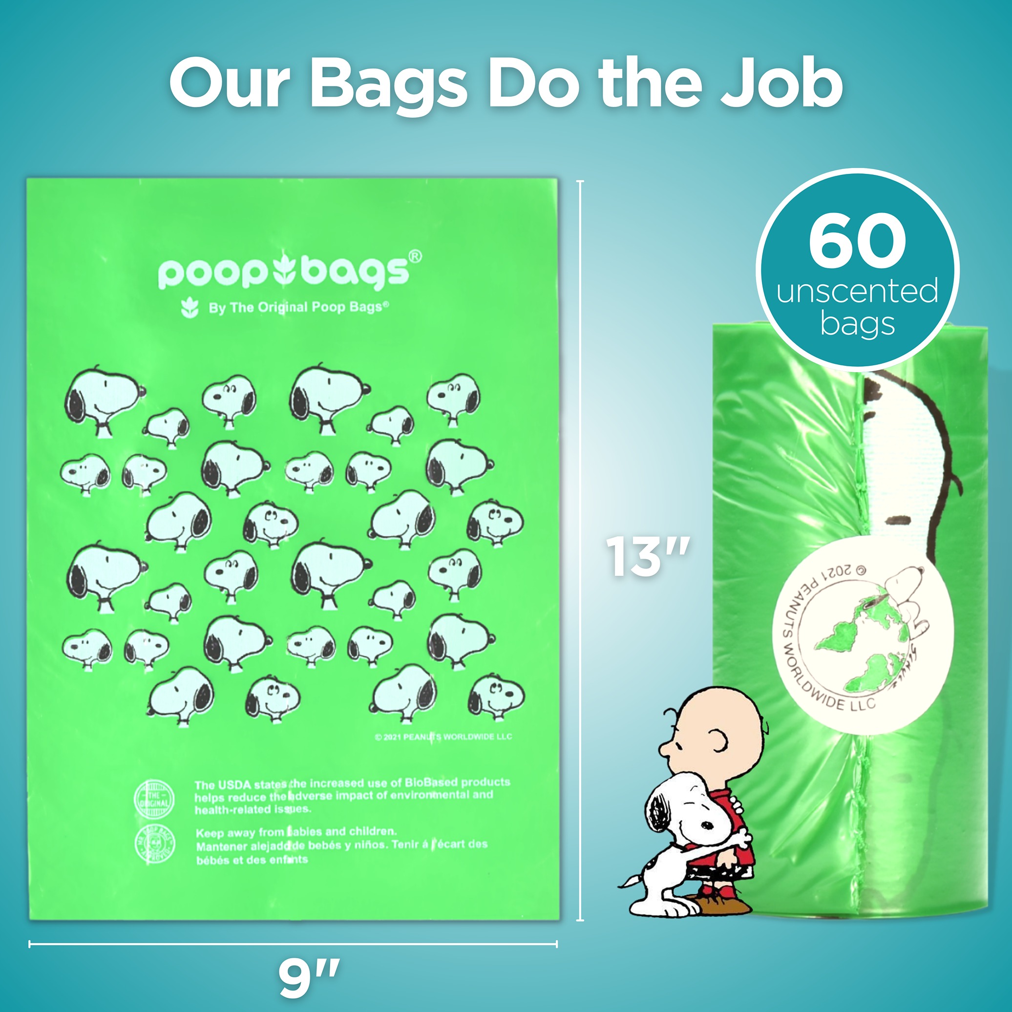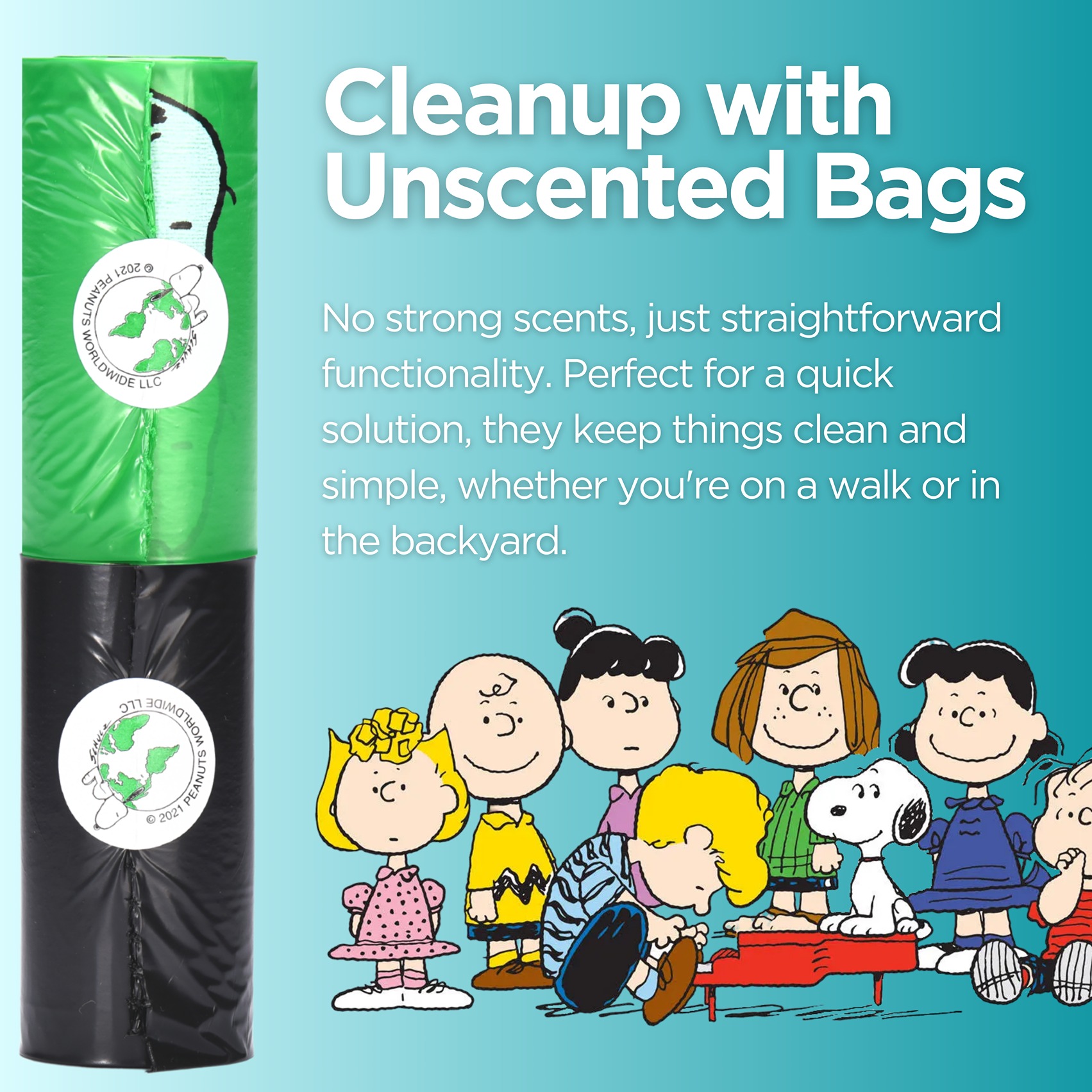 Clean up after your furry friend with our Peanuts® waste bags from The Original Poop Bags®. These exclusively licensed waste bags are made out of USDA Certified Biobased materials with a minimum of 38% plant material. These poop bags are large enough to allow pet parents to tie and seal the top of the bag. They are also thick and leak-proof to stand up to whatever your paw-tner leaves behind. Make picking up a bit more fun with Snoopy and The Gang!