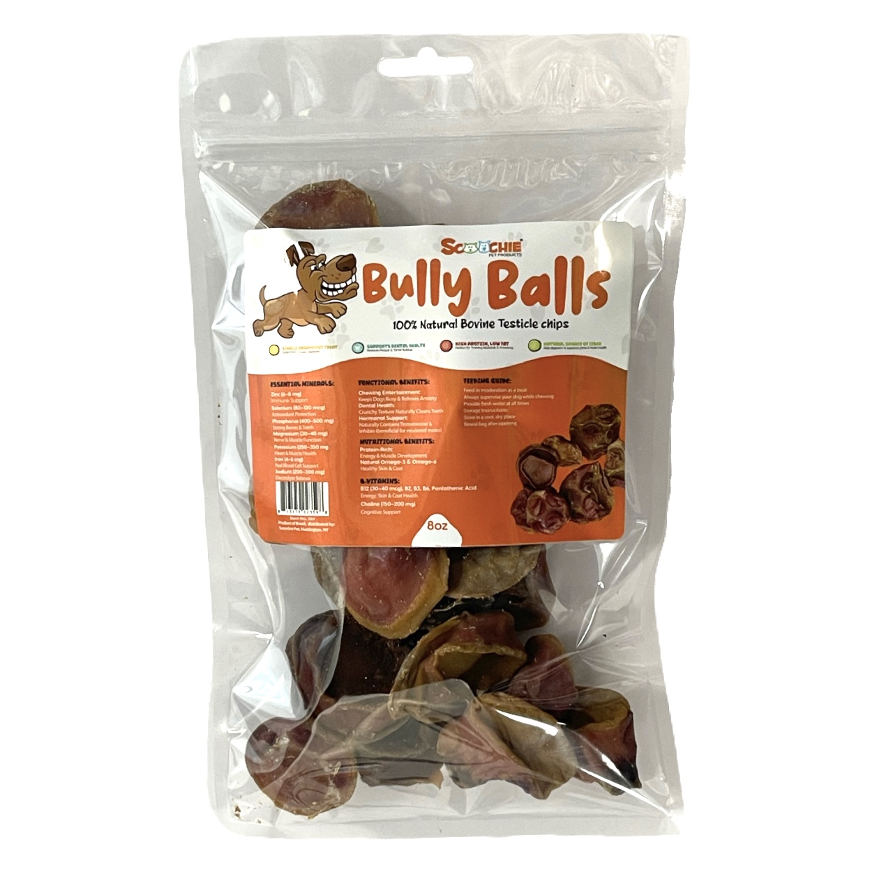 Give your dog a truly unique, high-protein snack with our Bully Balls—thinly sliced, gently dehydrated bull testicle chips made for serious chewers and adventurous pups.