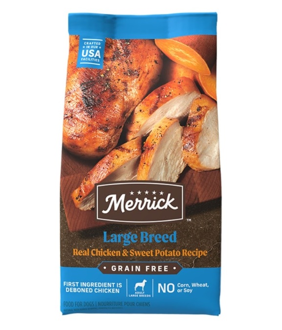 • Merrick Grain Free Premium Large Breed Dry Dog Food, Real Chicken And Sweet Potato Recipe. Wholesome And Natural With • Added Vitamins And Minerals Kibble For Adult Dogs