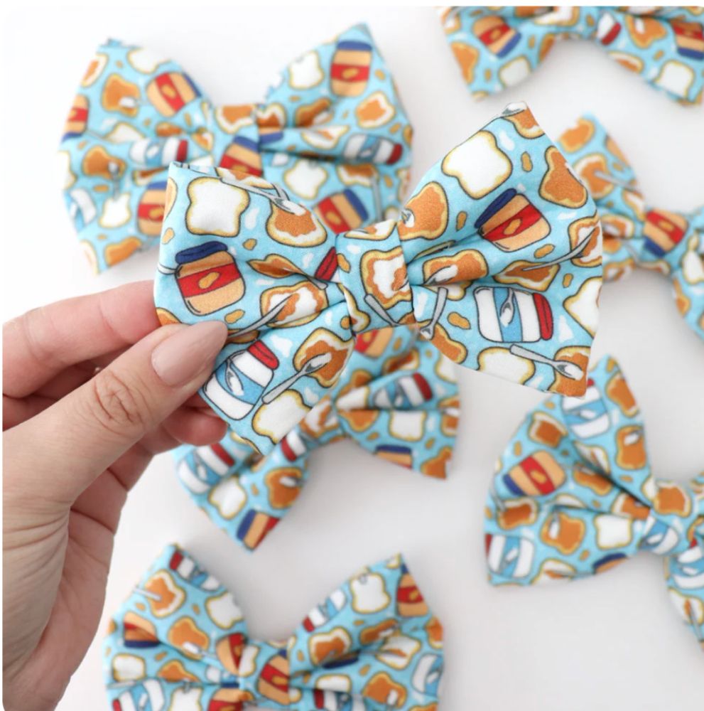 THESE BOW TIES HAVE AN VELCRO BACKING SO THAT THEY WORK WITH DIFFERENT TYPES OF COLLARS OR HARNESSES. OUR BOW TIES HAVE STABILIZER SEWN IN SO THAT THEY ALWAYS KEEP THEIR BOW TIE SHAPE! THESE BOW TIES ARE PACKAGED FOR RETAIL- READY TO DISPLAY.