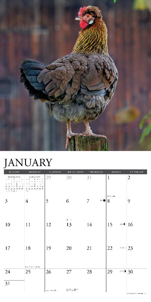 FEATHERED FRIENDS - Celebrate the charm and character of chickens with this delightful 2027 calendar, featuring vivid portraits of roosters, hens, and chicks in farmyard scenes. Whether you're a backyard poultry fan or just love these quirky birds, this calendar brings a bit of the barnyard to your home all year long. PLAN IN STYLE – Stay organized with our 12” x 12” monthly wall calendars, the perfect fit for any home or modern office. Six bonus months from July to December 2026 provide a smooth transition into the new year, while large monthly grids from January through December 2027 offer ample room for jotting notes and planning. PICTURE-PERFECT QUALITY – Printed with soy-based inks on high-quality FSC-certified paper, our large format 12” x 12” wall calendars offer smooth writing, crisp readability, and vibrant imagery, making them a welcome accent to any space. EFFORTLESS SCHEDULING – Enjoy ample space to note events, track appointments, and easily organize activities. Manage busy schedules at-a-glance with clearly noted moon phases (CST), holidays, and observances.