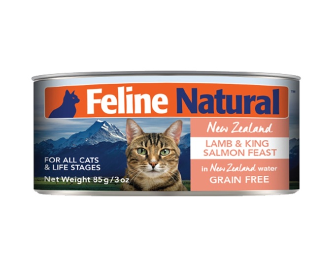 Made with grass-fed, free range Lamb and sustainably caught King Salmon, this Feline Natural Lamb & King Salmon diet provides the rich proteins, Omega 3 fatty acids, EPA and DPA to assist a cat’s natural anti-inflammatory responses and supports healthy skin, coat and joints. This high in meat, low in carbohydrate food is a complete & balanced meal. Grain-Free, BPA-free, as well as free from any binders, gum, or gelling agents. The only thing added is fresh New Zealand water for added hydration.