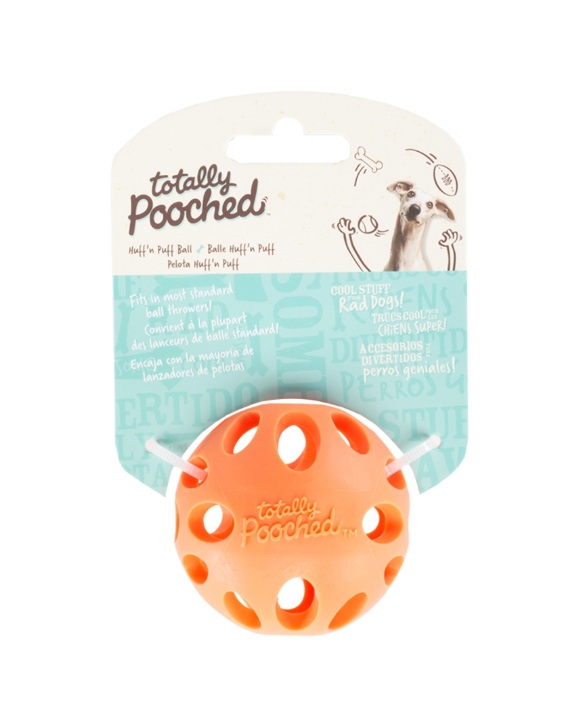 Totally Pooched Huff'n Puff Rubber Ball Dog Toy, Orange, Large