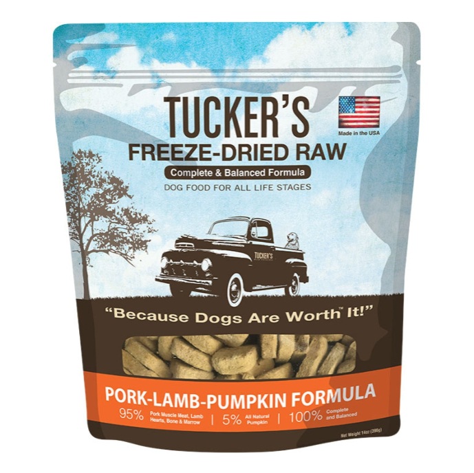 Tuckers Complete & Balanced Pork-Lamb-Pumpkin Formula is formulated to meet the nutritional levels established by the AAFCO Dog Food Nutrient Profiles for All Life Stages, including growth of large size dogs (70lbs or more as an adult).