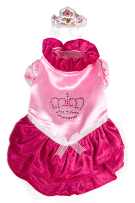Deep red velvet ballon bottom dress, with crown. Satin body with jeweled crown on the back, snaps in the front with trimmed balloon cap sleeves. Beautiful...
