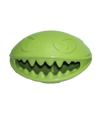 Don't let the cute look fool you... He is quite aggressive when you throw him down! Designed for erratic, unpredictable bouncing, this treat dispensing toy is sure to have your dog on their toes. Treats fit inside.