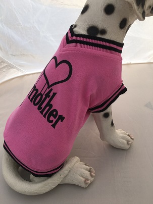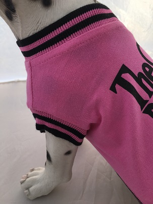 Here is the REAL BOSS wearing her shirt proudly. 100% Rib Cotton, Pink Body, Raglan Sleeve Trim color: Black and pink piping and ribbing Screen printing: “Dog Mother”. Hand washable, easy to wear and comfortable. Fun for all at any occasion.