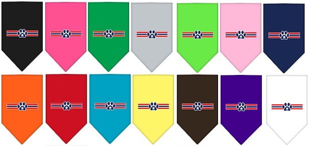 Small is a 14" x 14" square that is easily folded in half to create the triangle look needed. Roll the bandana until the desired length down the back has been achieved, then tie around the dog's neck.