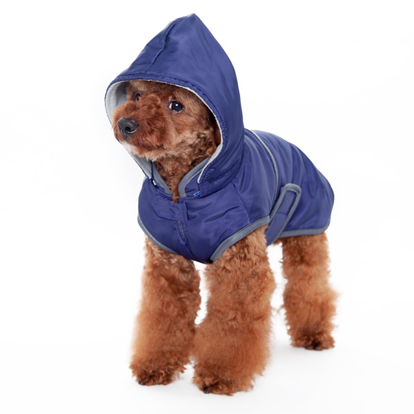 Stylish and fuctional. Water resistant, removable hood, warm fleece lining, and convenient leash hole.