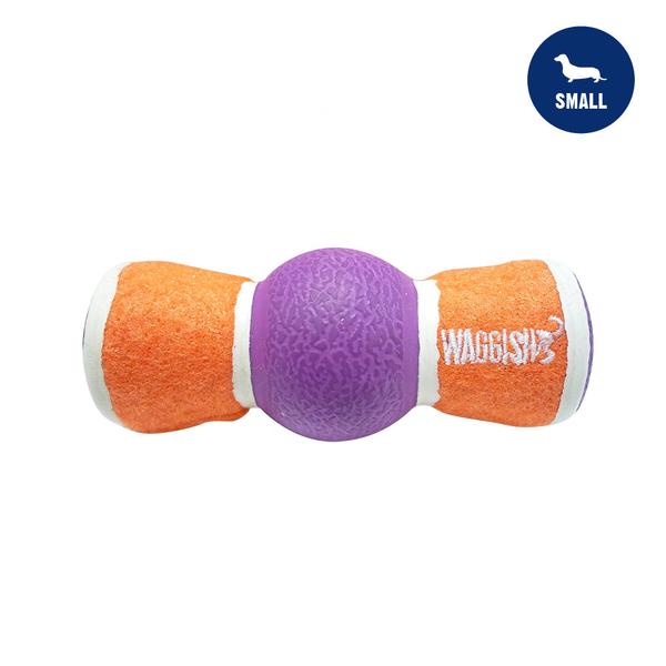 Get ready for a fetching good time with the Waggish Bark N Roll Fetcher. This rubber foam filled dog toy features a bouncy rubber center with two easy to pick up ends that are covered in a tennis ball like material that dogs can’t resist. The Bark N Roll Fetcher is great for tossing, fetching and light chewing. Ideal for puppies and small dogs.