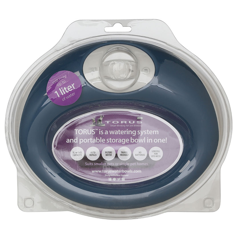 Torus stores 1L of water in its reservoir walls, dispensing filtered water through its carbon filter ensuring your pet has fresh clean filtered water to remain healthy. Its design means no plugs/batteries, mess or spills, less refilling and its lockable function makes it travel friendly. 1L is ideal for smaller pets. Comes with one carbon filter lasting one month. Colour Blue.