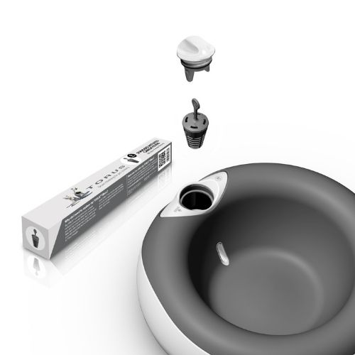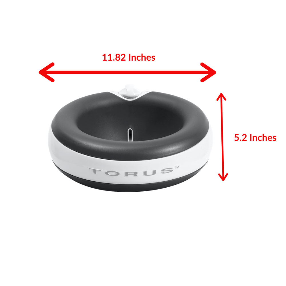 The TORUS™ design is comprised of a water storage area and a drinking well. The bulk of your pet’s water is stored and protected inside the hollow walls of TORUS™. Each time your pet takes a drink, replacement water automatically flows from the storage area through the filter into the drinking well.