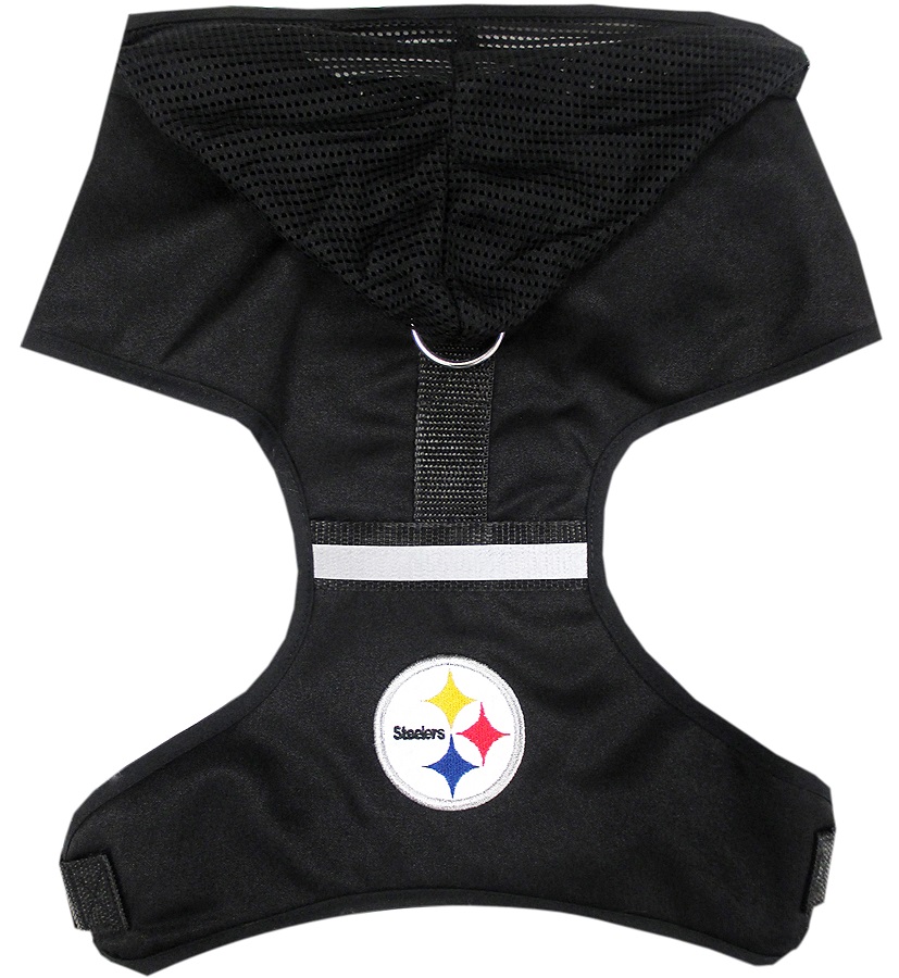 Official NFL licensed pet harness with embroidered team logo and adjustable straps.