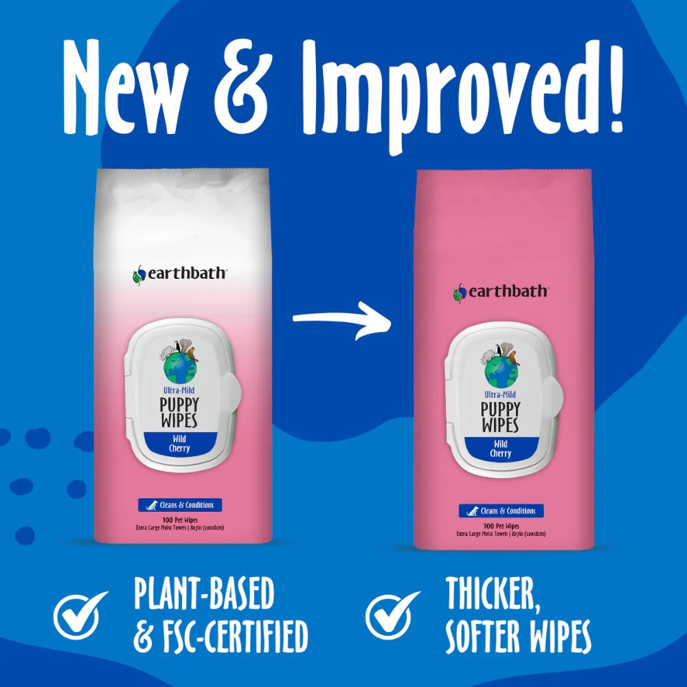 earthbath® Ultra-Mild Puppy Grooming Wipes safely and easily wipe away dirt and odor between baths. Handily clean pets' dirty paws and undercoat. Remove dander, drool, discharge, & cling-ons from playing in the unknown. Mild cleansers deodorize, freshen, and clean as the exotic Hawaiian Awapuhi conditions the coat and imparts a healthy shine. Aloe vera & vitamin E moisturize both coat and skin. Safe for animals over 6 weeks old.