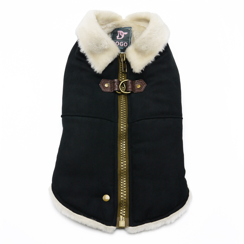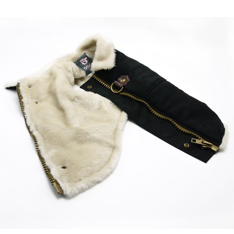Warm insulated classic faux fur lining design with vintage top zipper closure and matching sweater trim. Size XS to XL have a D-Ring design for leash attachment. Note: Size 2XL to 4XL come with buckle design.