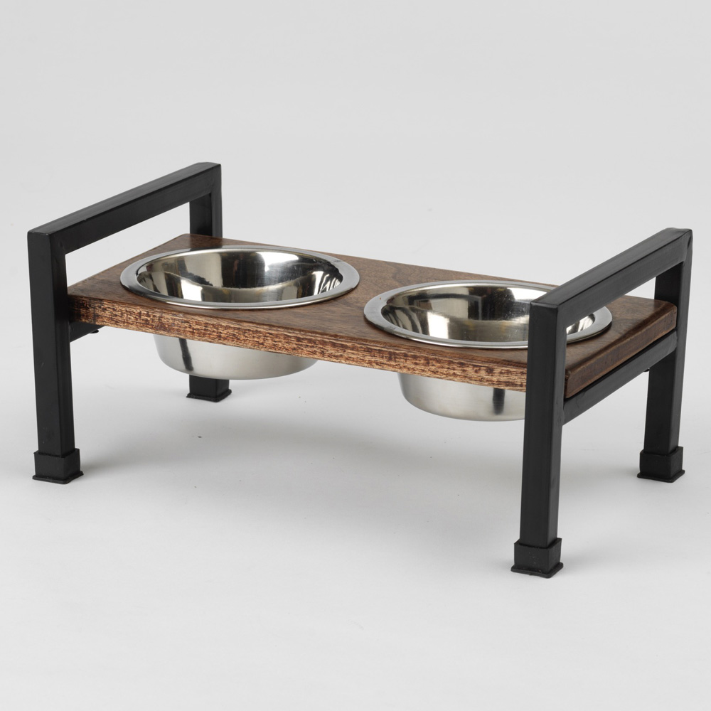 Walnut with Black, each Martinique Walnut diner features two removable stainless steel bowls, a durable mango hardwood table, and steel legs with non-slip footings.