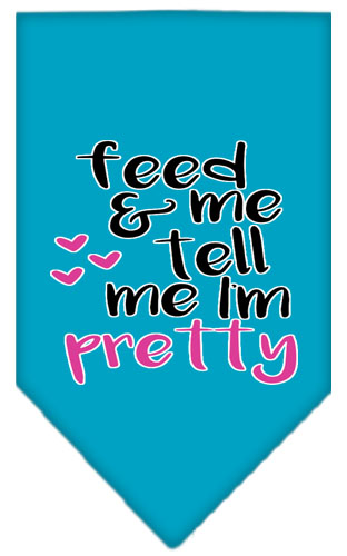 Small is a 14" x 14" square that is easily folded in half to create the triangle look needed. Roll the bandana unil the desired length down the back has been achieved, then tie around the dog's neck.