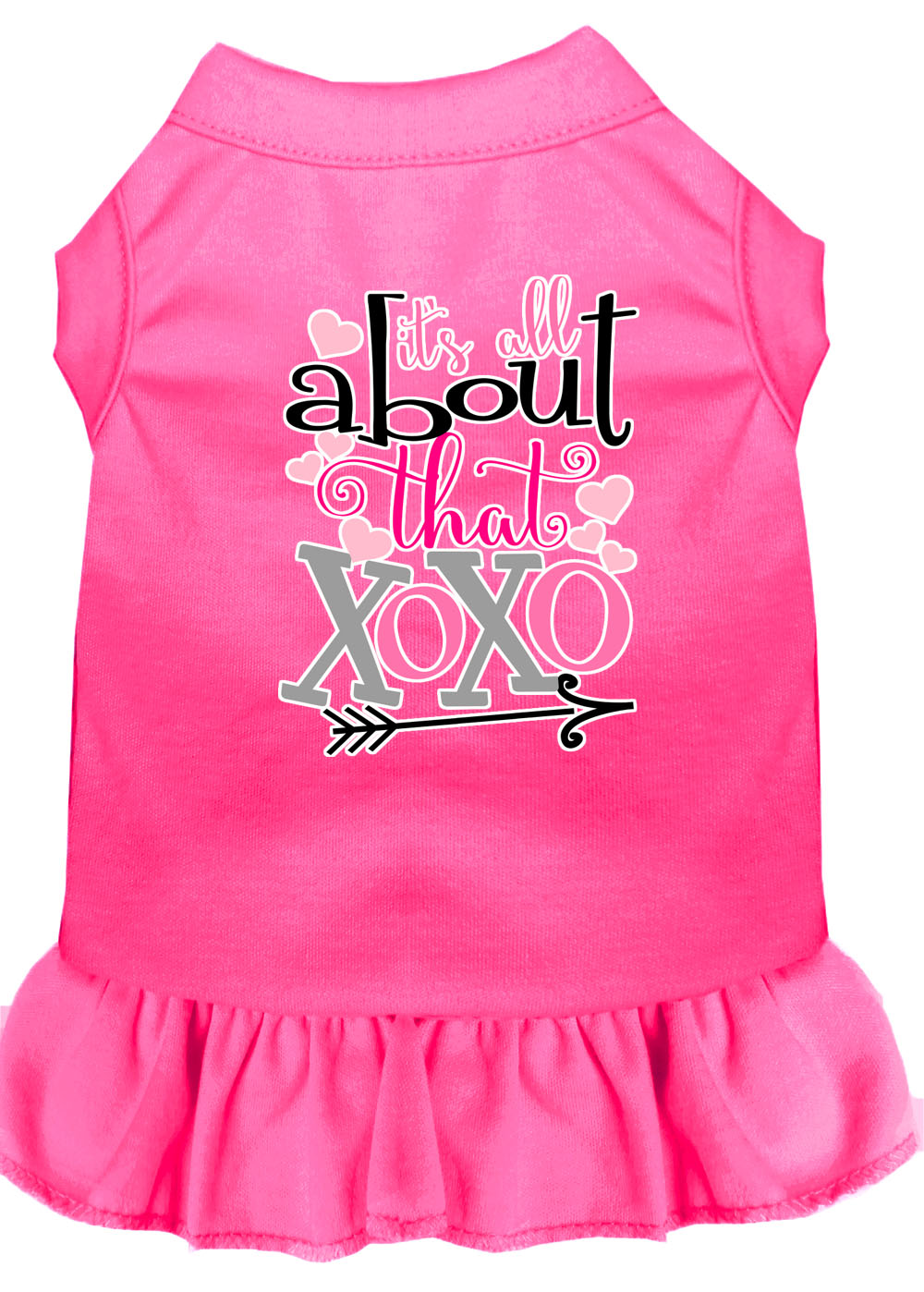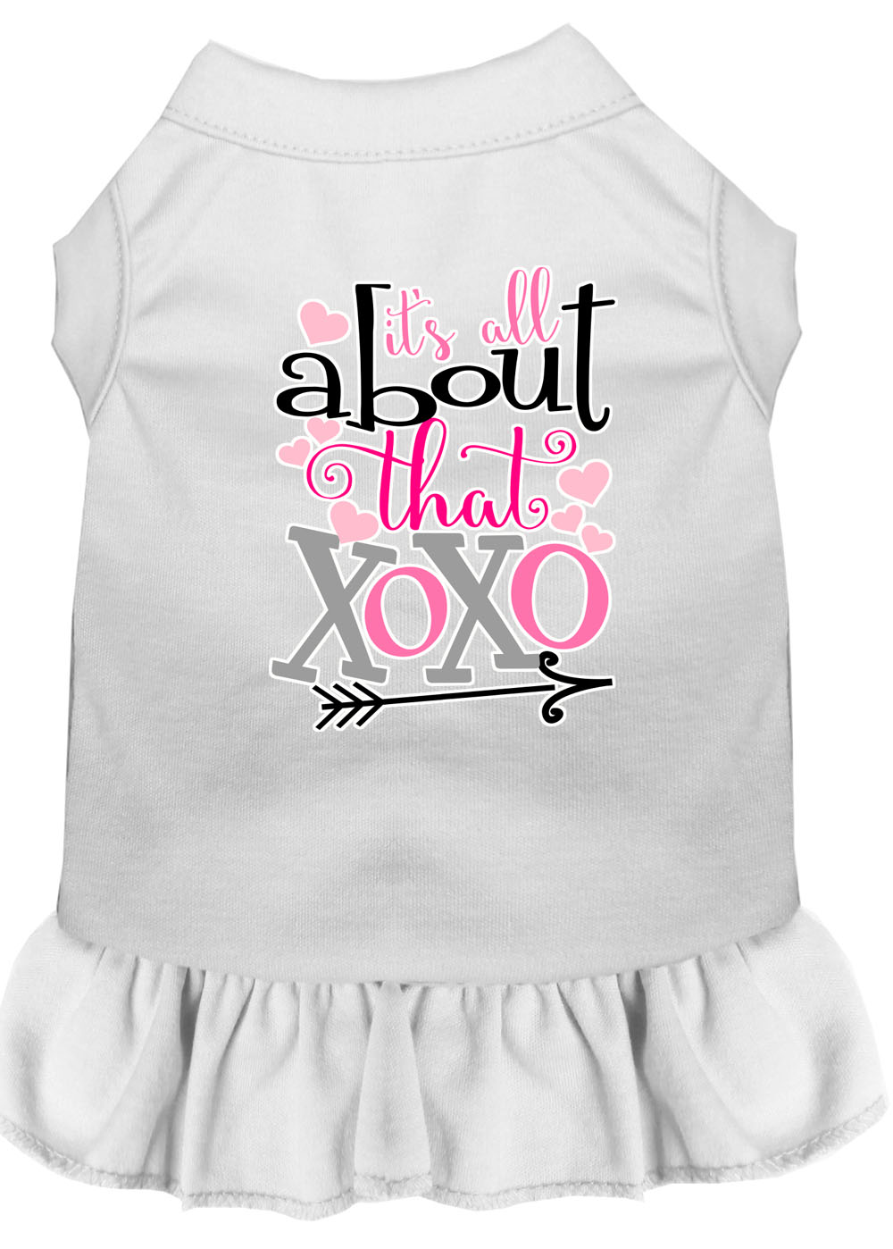 A poly/cotton sleveless shirt with a cute ruffle sewn onto the bottom to give this dress the perfect feminine flair!