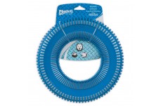 Chuckit! Rugged Flyer Chuckit's first rigid flyer! Designed to withstand tough dogs and rough play. Polypropylene core provides rigidity and strength while over molded TPR ridges allow dogs to easily grip for pickup and retrieval Ergonomic shape for easy catching and pickup It floats and great for both land and water play