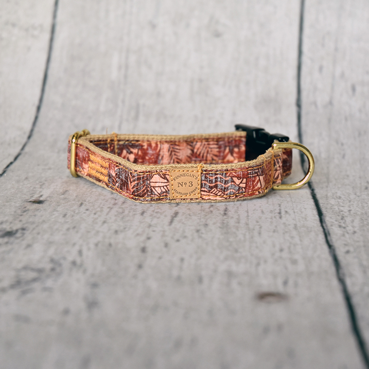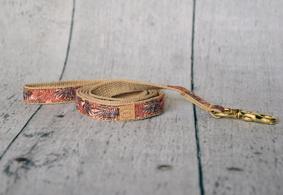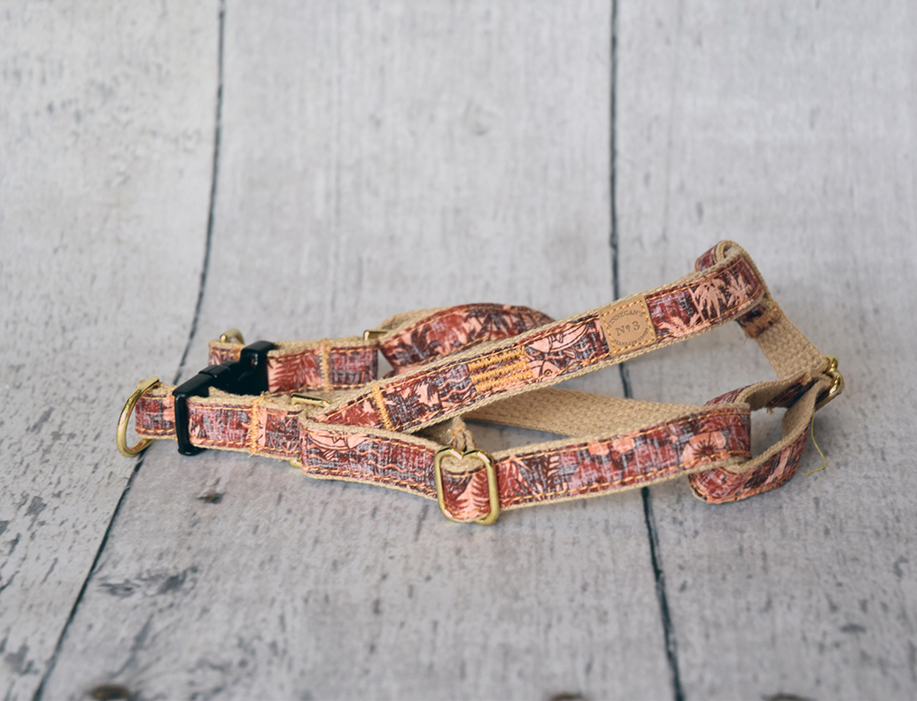 All of our accessories are made on lightweight soft cotton webbing. We use different fabrications, sourced from all over the world, accompanied by solid brass fittings and an adjustable collar. All of our products are handmade and assembled in San Francisco, California.