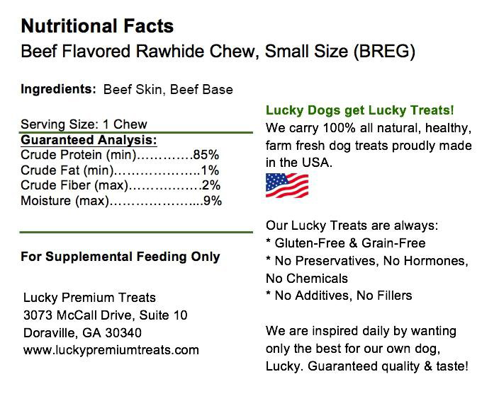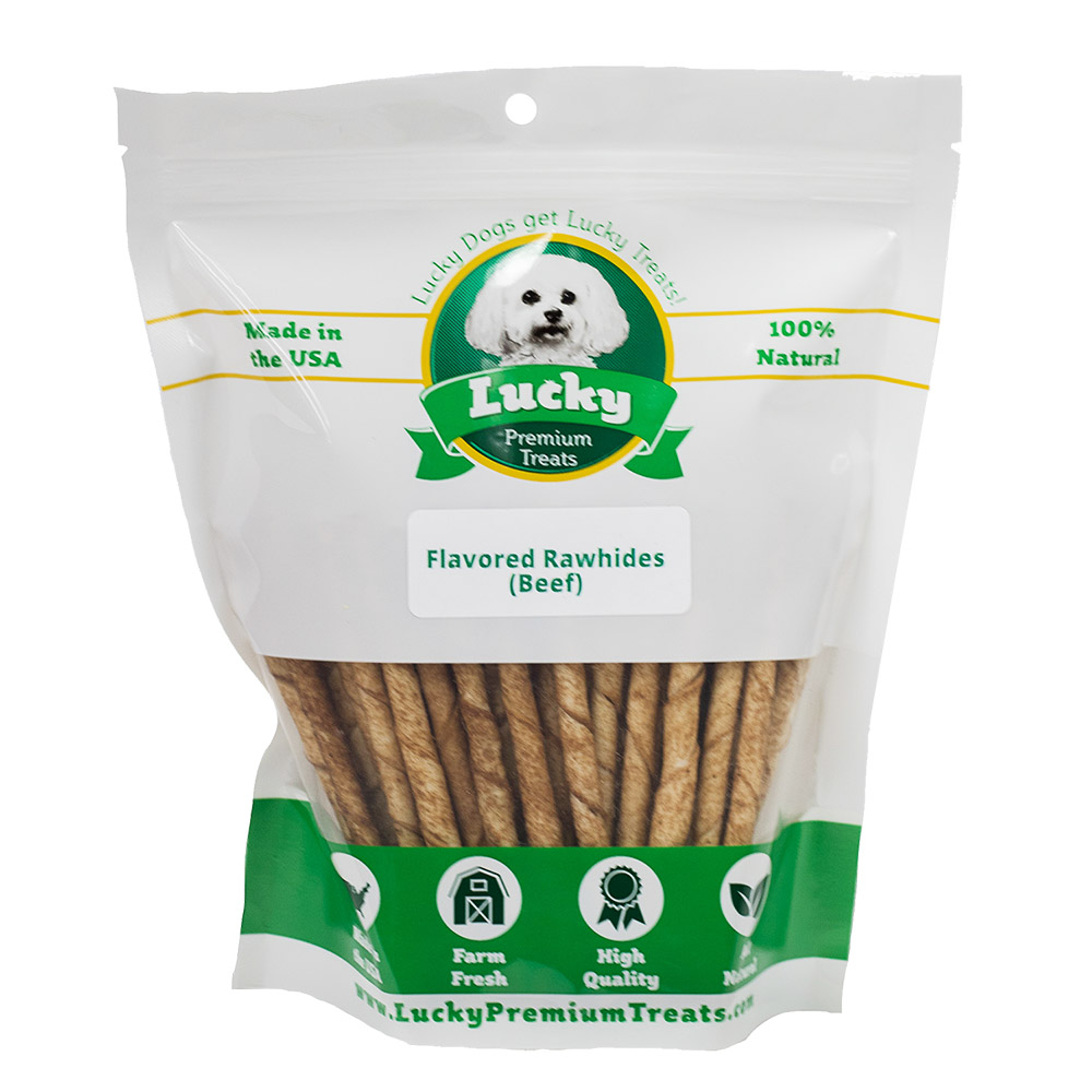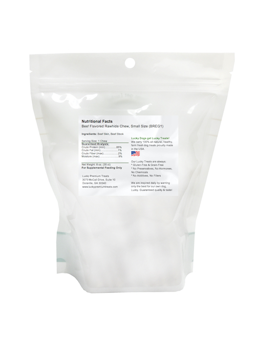 Our Beef Basted Beefhide is the perfect treat for small-sized dogs with a healthy appetite. These delicious chews are made up of only two ingredients: restaurant quality beef skin and beef base. If you have a pooch that likes to gnaw and chew on everything he or she can get their jaws onto, then these are the treats for them.
