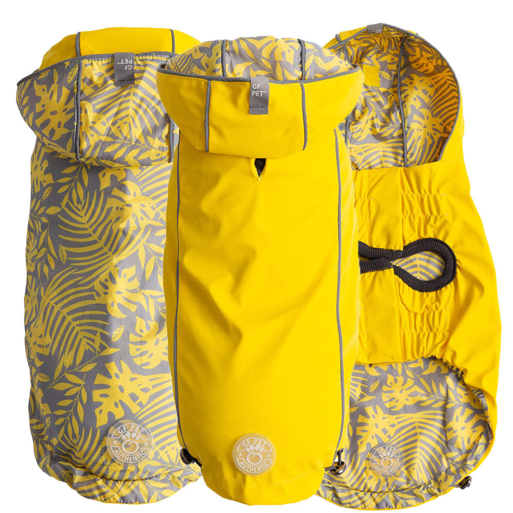 THE GF PET® REVERSIBLE RAINCOAT IS A UNISEX WARDROBE STAPLE AND HAS EVERYTHING! IT FEATURES PATENTED ELASTO-FIT® TECHNOLOGY FOR A GREAT FIT; IT IS WATERPROOF, REFLECTIVE AND REVERSIBLE. BUTTERY SOFT, WATERPROOF PVA ON ONE SIDE AND LUXURIOUS, WATER-RESISTANT PRINTED DESIGN ON THE OTHER. TACKABLE HOOD CAN BE WORN UP OR DOWN. FASHION AND FUNCTION COMBINED!